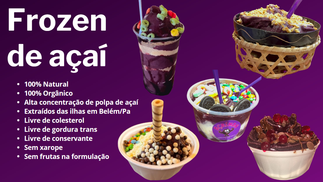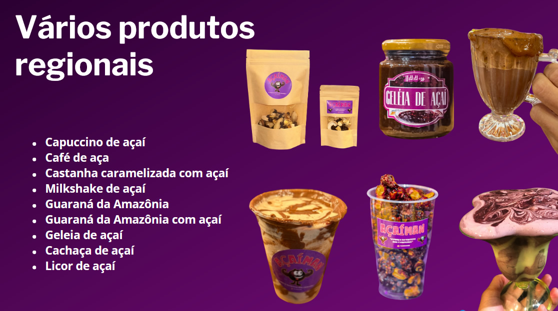 PRODUTOS A Açaíman oferece o verdadeiro sabor da Amazônia com produtos de açaí 100% naturais, cremosos e energéticos. Perfeitos para quem busca saúde, sabor e vitalidade no dia a dia. Experimente a força do açaí com a qualidade que só a Açaíman entrega!